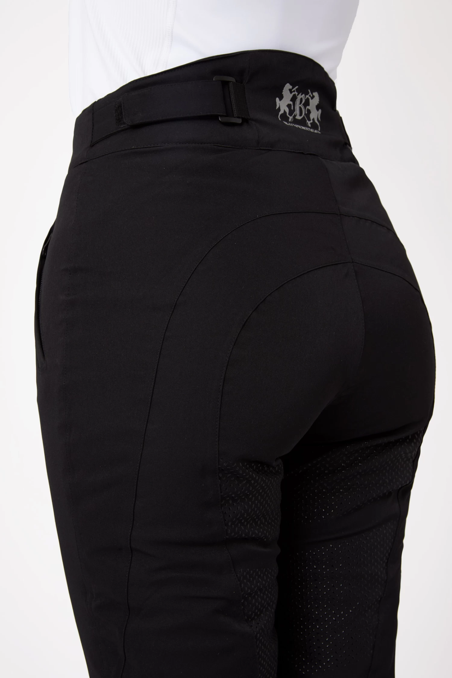 Zahlreiche praktische Merkmale machen die Dana zur ultimativen Winterreithose. Die verstellbare Taille mit Klettverschlüssen und die abnehmbaren elastischen Beingurte ermöglichen es, diese Reithose genau auf deine Bedürfnisse abzustimmen. Das wattierte Material ist bequem und bietet die nötige Wärme für kühle Tage – es ist außerdem wasserdicht, winddicht und atmungsaktiv, sodass du es mit jedem Wetter aufnehmen kannst. Die Dehnbarkeit sorgt für eine gute Passform und Komfort beim Reiten und der technische Silikondruck auf dem Sitz und ein hoher Bund sorgen für perfekte Form und Halt im Sattel. Vordere Reißverschlusstaschen sind ideal für die Aufbewahrung von Schlüsseln oder Leckerli. Das stilvolle B Vertigo Logo ist ein toller Abschluss für diese hochwertige Winterreithose.